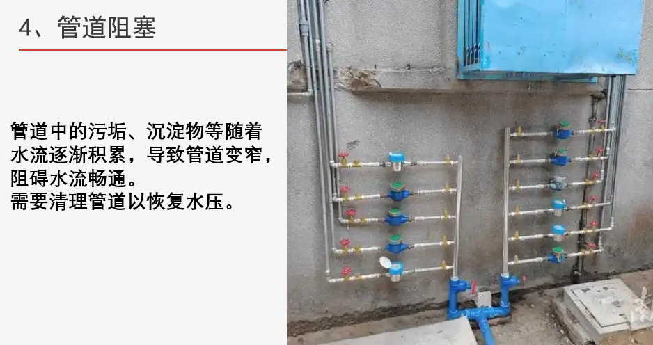管道中的污垢、沉淀物等隨著水流逐漸積累,導(dǎo)致管道變窄,阻礙水流暢通。